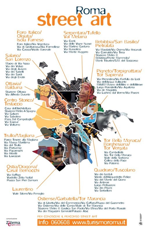 Roma viene definita come la capitale europea della street art. Tra gli antichi monumenti della capitale nasce una nuova forma artistica avente forte impatto e colori vivaci, dove, nella maggior parte dei casi, lo street artist mette alla base delle sue opere motivazioni personali: per alcuni è un mezzo attraverso il quale si esprime la contrarietà per il sistema economico e politico del nostro paese, per altri si tratta di condividere la propria arte raggiungendo un numero più ampio possibile di persone, riuscendo così a ribaltare e rinnovare il concetto dei musei. Grazie alla street art case di periferia e quartieri diventano letteralmente un museo a cieloaperto, di cui tutti possono goderne e apprezzarne la vista a costo zero.